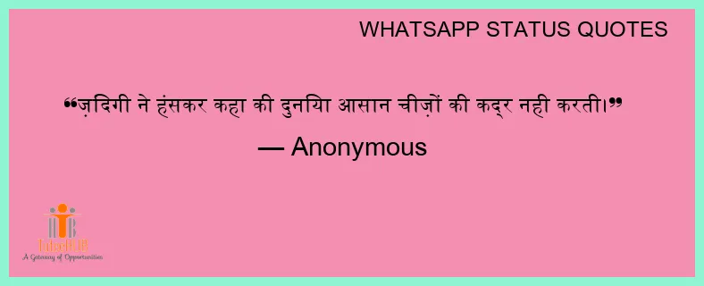 ज़िंदगी ने हंसकर कहा की दुनिया आसान चीज़ों की कद्र नही करती।