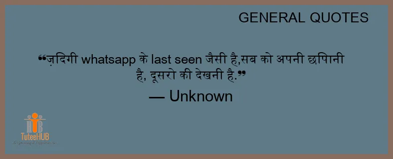 ज़िंदगी WHATSAPP के LAST seen जैसी है,सब को अपनी छिपानी है, दूसरो की देखनी है.