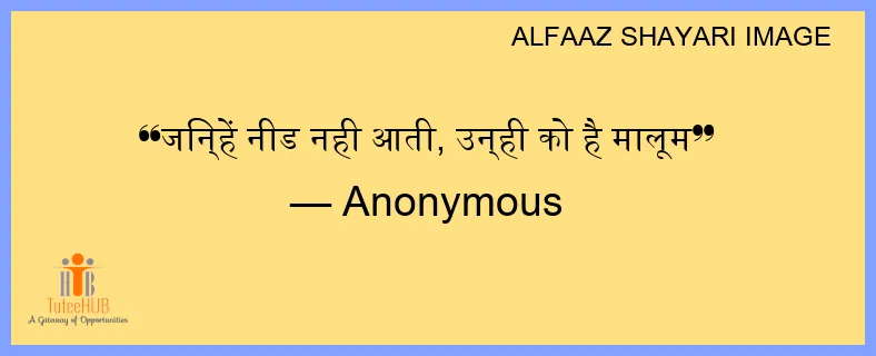 जिन्हें नीड नही आती, उन्ही को है मालूम