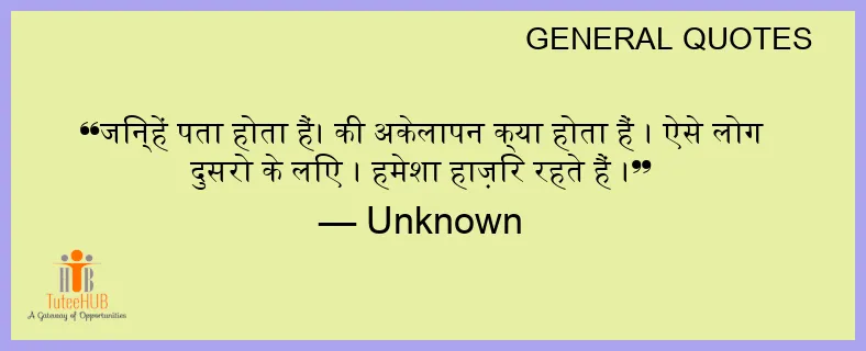 जिन्हें पता होता हैं। की अकेलापन क्या होता हैं । ऐसे लोग दुसरो के लिए । हमेशा हाज़िर रहते हैं ।