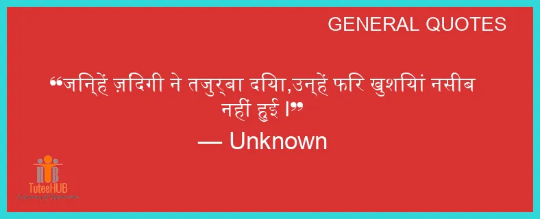 जिन्हें ज़िंदगी ने तजुर्बा दिया,उन्हें फिर खुशियां नसीब नहीं हुई I