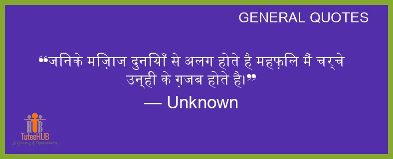 जिनके मिज़ाज दुनियाँ से अलग होते है महफ़िल मैं चर्चे उन्ही के ग़जब होते है।