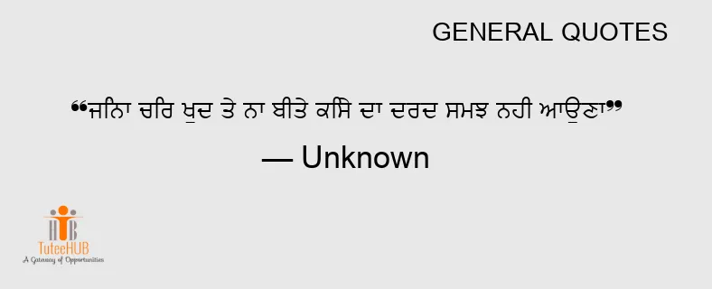 ਜਿੰਨਾ ਚਿਰ ਖੁਦ ਤੇ ਨਾ ਬੀਤੇ ਕਿਸੇ ਦਾ ਦਰਦ ਸਮਝ ਨਹੀਂ ਆਉਣਾ