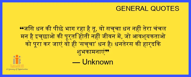 जिस धन की पीछे भाग रहा है तू, वो सच्चा धन नहीं तेरा चंचल मन है इच्छाओ की पूर्ति होती नहीं जीवन में, जो आवश्यकताओ को पूरा कर जाएं वो ही ‘सच्चा’ धन है। धनतेरस की हार्दिक शुभकामनाएं