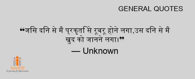 जिस दिन से मैं प्रकृति से रूबरू होने लगा,उस दिन से मैं खुद को जानने लगा।