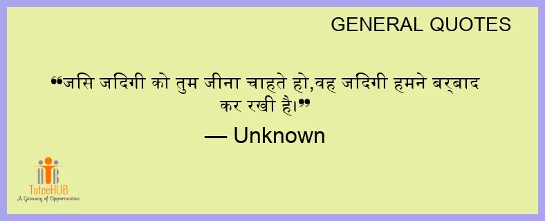 जिस जिंदगी को तुम जीना चाहते हो,वह जिंदगी हमने बर्बाद कर रखी है।