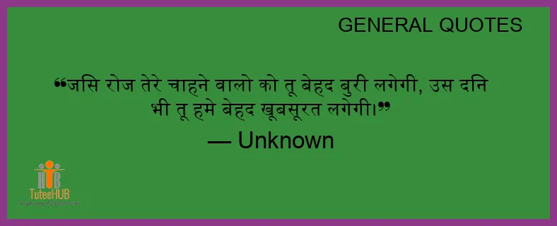 जिस रोज तेरे चाहने वालो को तू बेहद बुरी लगेगी, उस दिन भी तू हमे बेहद खूबसूरत लगेगी।