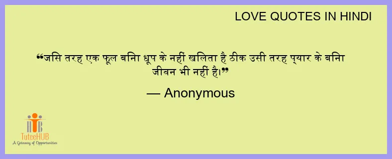 जिस तरह एक फूल बिना धूप के नहीं खिलता है ठीक उसी तरह प्यार के बिना जीवन भी नहीं है।