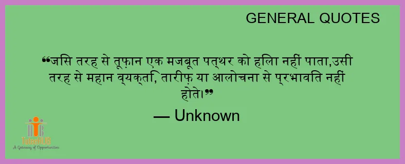 जिस तरह से तूफ़ान एक मजबूत पत्थर को हिला नहीं पाता,उसी तरह से महान व्यक्ति, तारीफ़ या आलोचना से प्रभावित नहीं होते।