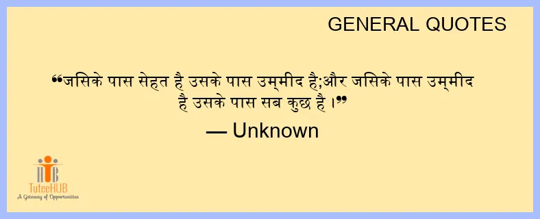 जिसके पास सेहत है उसके पास उम्मीद है;और जिसके पास उम्मीद है उसके पास सब कुछ है ।