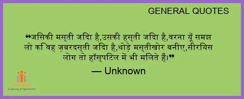 जिसकी मस्ती जिंदा है,उसकी हस्ती जिंदा है,वरना यूँ समझ लो कि वह ज़बरदस्ती जिंदा है,थोड़े मस्तीखोर बनीए,सीरियस लोग तो हॉस्पिटल में भी मिलते हैं।