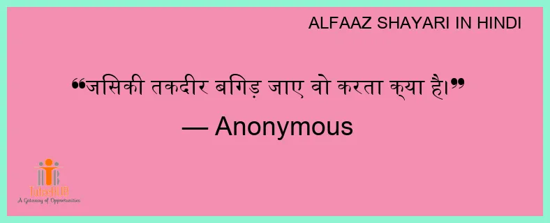 जिसकी तकदीर बिगड़ जाए वो करता क्या है।