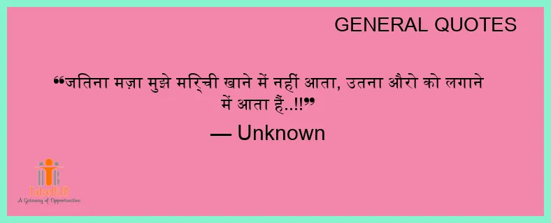 जितना मज़ा मुझे मिर्ची खाने में नहीं आता, उतना औरो को लगाने में आता हैं..!!