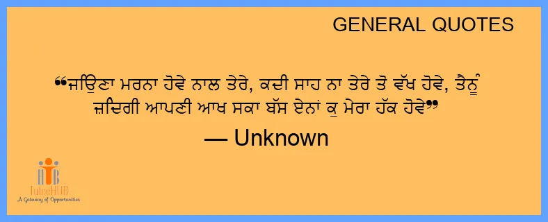 ਜਿਉਣਾ ਮਰਨਾ ਹੋਵੇ ਨਾਲ ਤੇਰੇ, ਕਦੀ ਸਾਹ ਨਾ ਤੇਰੇ ਤੋਂ ਵੱਖ ਹੋਵੇ, ਤੈਨੂੰ ਜ਼ਿੰਦਗੀ ਆਪਣੀ ਆਖ ਸਕਾ ਬੱਸ ਏਨਾਂ ਕੁ ਮੇਰਾ ਹੱਕ ਹੋਵੇ
