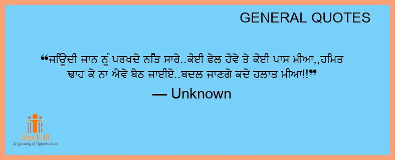 ਜਿਊਦੀ ਜਾਨ ਨੂੰ ਪਰਖਦੇ ਨਿੱਤ ਸਾਰੇ..ਕੋਈ ਫੇਲ ਹੋਵੇ ਤੇ ਕੋਈ ਪਾਸ ਮੀਆ,,ਹਿੰਮਤ ਢਾਹ ਕੇ ਨਾ ਐਵੇ ਬੈਠ ਜਾਈਏ..ਬਦਲ ਜਾਣਗੇ ਕਦੇ ਹਲਾਤ ਮੀਆ!!