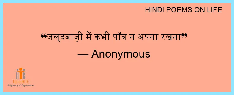 जल्दबाज़ी में कभी पॉव न अपना रखना