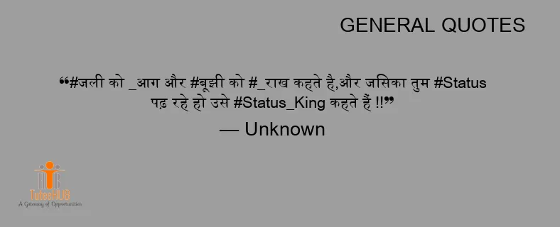 #जली को _आग और #बूझी को #_राख कहते है,और जिसका तुम #Status पढ़ रहे हो उसे #Status_King कहते हैं !!