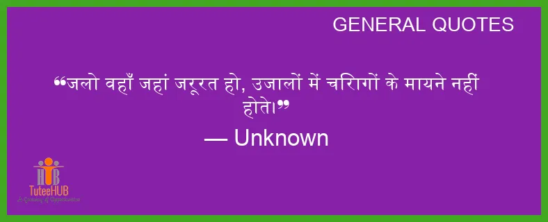 जलो वहाँ जहां जरूरत हो, उजालों में चिरागों के मायने नहीं होते।