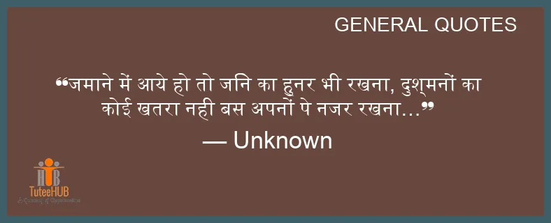 जमाने में आये हो तो जिने का हुनर भी रखना, दुश्मनों का कोई खतरा नही बस अपनों पे नजर रखना…