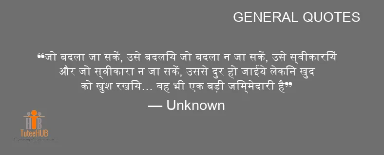 जो बदला जा सकें, उसे बदलिये जो बदला न जा सकें, उसे स्वीकारियें और जो स्वीकारा न जा सकें, उससे दुर हो जाईये लेकिन खुद को खुश रखिये… वह भी एक बड़ी जिम्मेदारी है