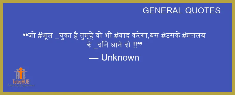 जो #भूल _चुका है तुम्हें वो भी #याद करेगा,बस #उसके #मतलब के _दिन आने दो !!