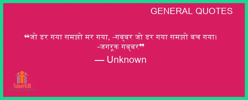जो डर गया समझो मर गया, -गब्‍बर जो डर गया समझो बच गया। -जगरूक गब्‍बर