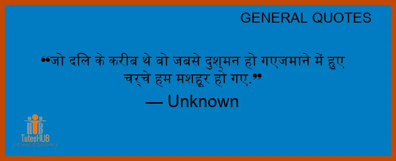 जो दिल के करीब थे वो जबसे दुश्मन हो गएजमाने में हुए चर्चे हम मशहूर हो गए.