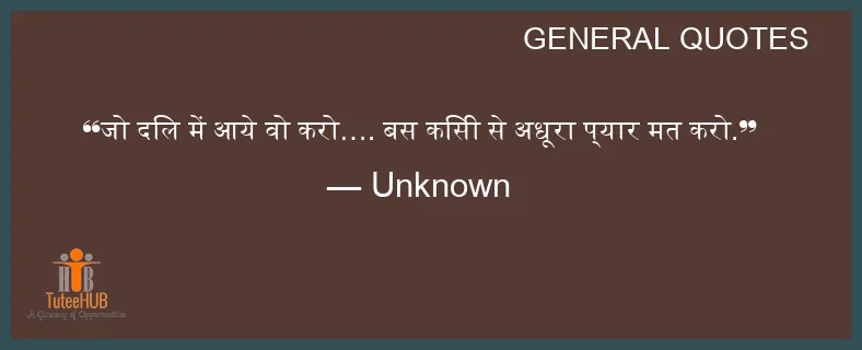 जो दिल में आये वो करो…. बस किसी से अधूरा प्यार मत करो.