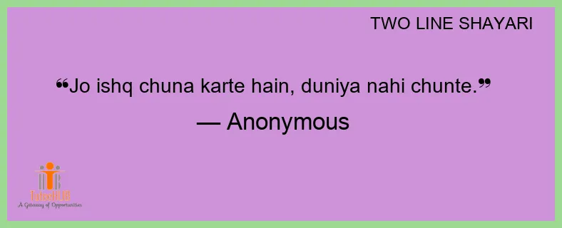 Jo ishq chuna karte hain, duniya nahi chunte.
