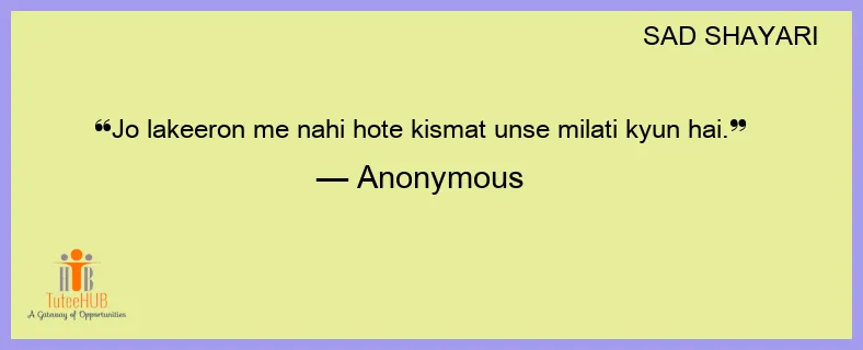 Jo lakeeron me nahi hote kismat unse milati kyun hai.