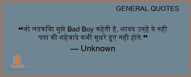 जो लडकिया मुझे Bad Boy कहेती है, शायद उन्हें ये नही पता की शहेजादे कभी सुधरे हुए नही होते.