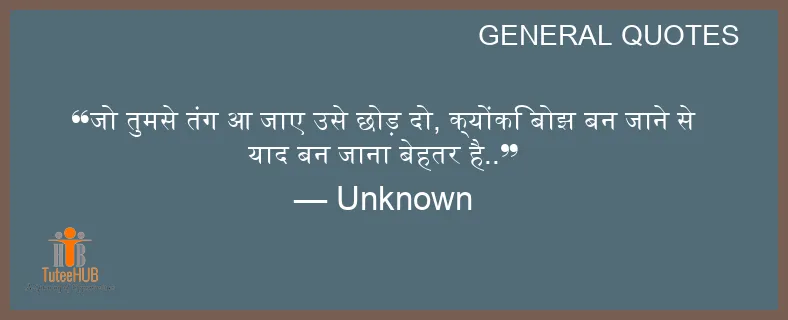 जो तुमसे तंग आ जाए उसे छोड़ दो, क्योंकि बोझ बन जाने से याद बन जाना बेहतर है..