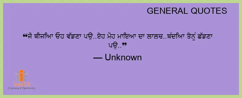 ਜੋ ਬੀਜਿਅਾ ਓਹ ਵੱਡਣਾ ਪਉ..ਏਹ ਮੋਹ ਮਾਇਅਾ ਦਾ ਲਾਲਚ..ਬੰਦਿਅਾ ਤੈਨੂੰ ਛੱਡਣਾ ਪਉ..