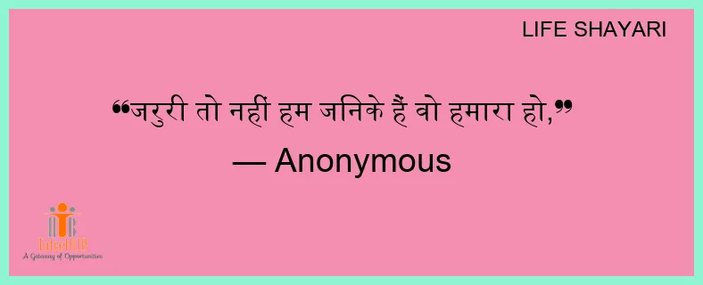 जरुरी तो नहीं हम जिनके हैं वो हमारा हो,