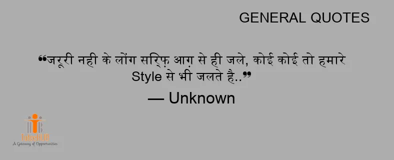 जरूरी नही के लोंग सिर्फ़ आग़ से ही जले, कोई कोई तो हमारे Style से भी जलते है..