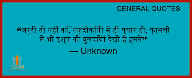 जरूरी तो नहीं कि, नज़दीकियों में ही प्यार हो; फ़ासलों में भी इश्क़ की बुलंदियाँ देखी है हमनें