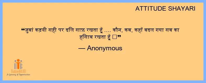 जुबां कड़वी सही पर दिल साफ़ रखता हूँ …. कौन, कब, कहाँ बदल गया सब का हिसाब रखता हूँ 😎