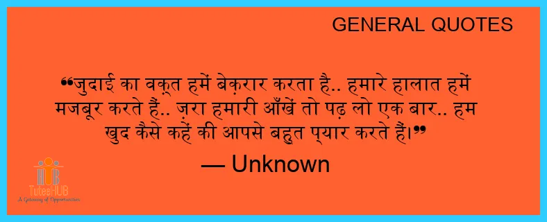 जुदाई का वक़्त हमें बेक़रार करता है.. हमारे हालात हमें मजबूर करते हैं.. ज़रा हमारी आँखें तो पढ़ लो एक बार.. हम खुद कैसे कहें की आपसे बहुत प्यार करते हैं।