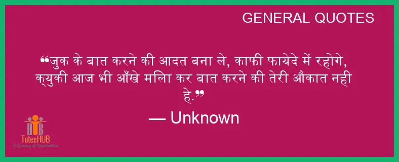 जुक के बात करने की आदत बना ले, काफी फायेदे में रहोगे, क्युकी आज भी आँखे मिला कर बात करने की तेरी औकात नही हे.