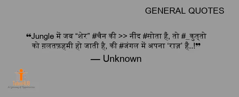 Jungle में जब “शेर” #चैन की >> नींद #सोता हैं, तो #_कुत्तो को ग़लतफ़हमी हो जाती है, की #जंगल में अपना ‘राज़’ हैं..!