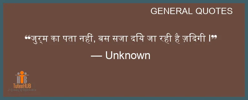 जुर्म का पता नहीं, बस सजा दिये जा रही है ज़िंदगी I