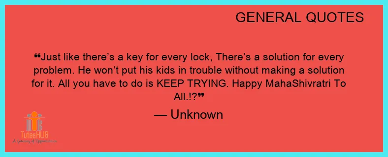 Just like there’s a KEY for EVERY lock, There’s a SOLUTION for every problem. He won’t put his kids in TROUBLE without making a solution for it. All you have to do is KEEP TRYING. Happy MahaShivratri To All.!?