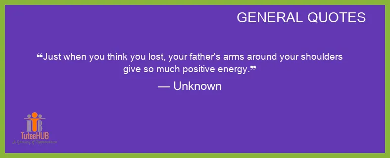 Just when you THINK you LOST, your father's arms AROUND your shoulders give so much POSITIVE energy.