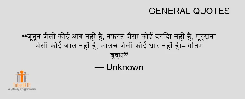 जूनून जैसी कोई आग नहीं है, नफरत जैसा कोई दरिंदा नहीं है, मूर्खता जैसी कोई जाल नहीं है, लालच जैसी कोई धार नहीं है।– गौतम बुद्ध