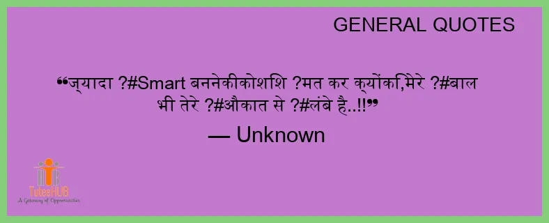 ज्यादा ?#Smart बननेकीकोशिश ?मत कर क्योंकि,मेरे ?#बाल भी तेरे ?#औकात से ?#लंबे है..!!