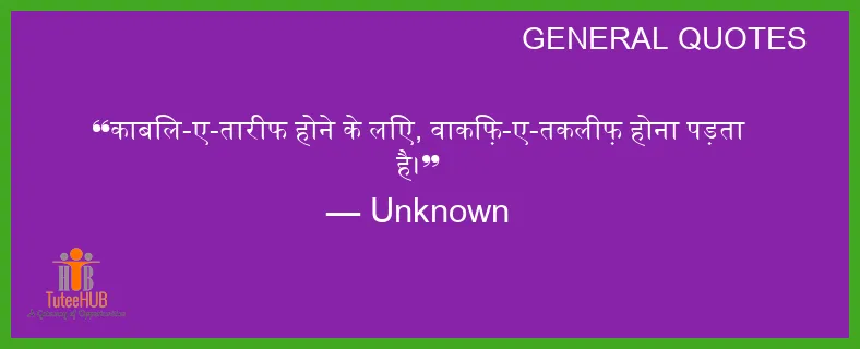 काबिल-ए-तारीफ होने के लिए, वाकिफ़-ए-तकलीफ़ होना पड़ता है।