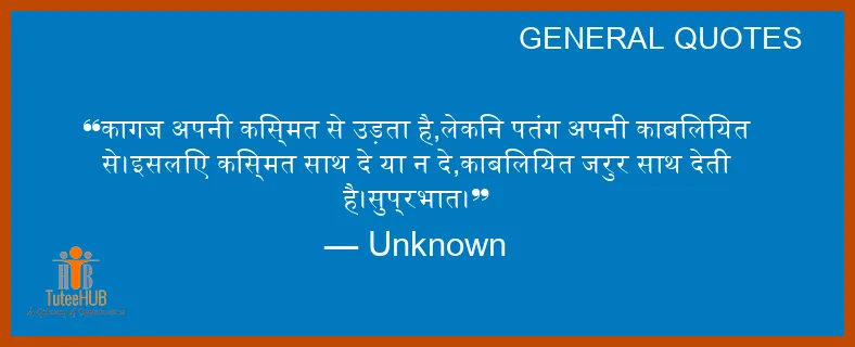 कागज अपनी किस्मत से उड़ता है,लेकिन पतंग अपनी काबिलियत से।इसलिए किस्मत साथ दे या न दे,काबिलियत जरुर साथ देती है।सुप्रभात।