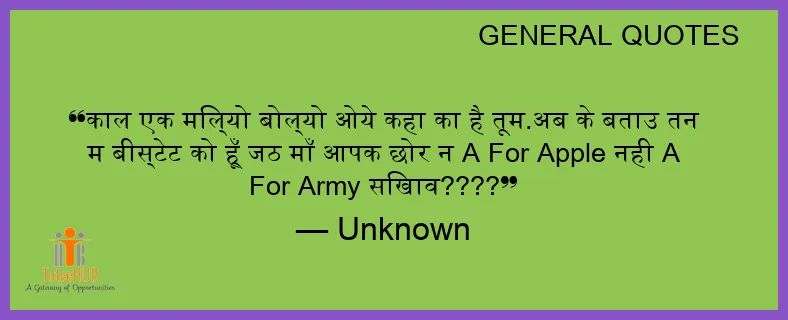 काल एक मिल्यो बोल्यो ओये कहा का है तूम.अब के बताउ तन म बीस्टेट को हूँ जठ माँ आपक छोर न A For Apple नही A For Army सिखाव????