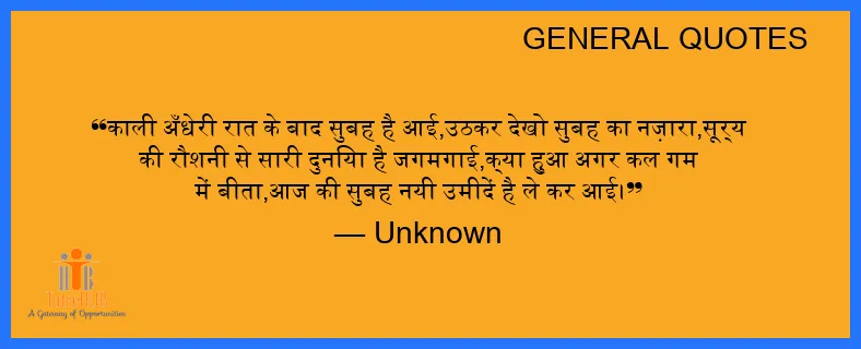 काली अँधेरी रात के बाद सुबह है आई,उठकर देखो सुबह का नज़ारा,सूर्य की रौशनी से सारी दुनिया है जगमगाई,क्या हुआ अगर कल गम में बीता,आज की सुबह नयी उमीदें है ले कर आई।