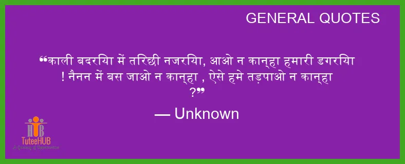 काली बदरिया में तिरछी नजरिया, आओ न कान्हा हमारी डगरिया ! नैनन में बस जाओ न कान्हा , ऐसे हमे तड़पाओ न कान्हा ?